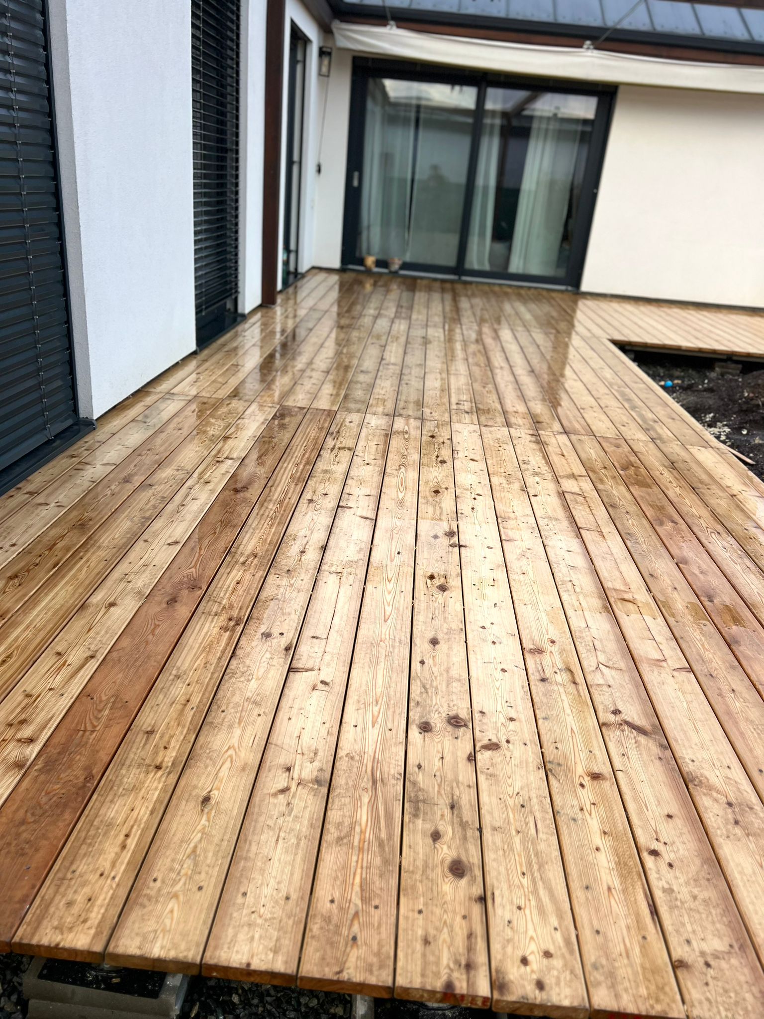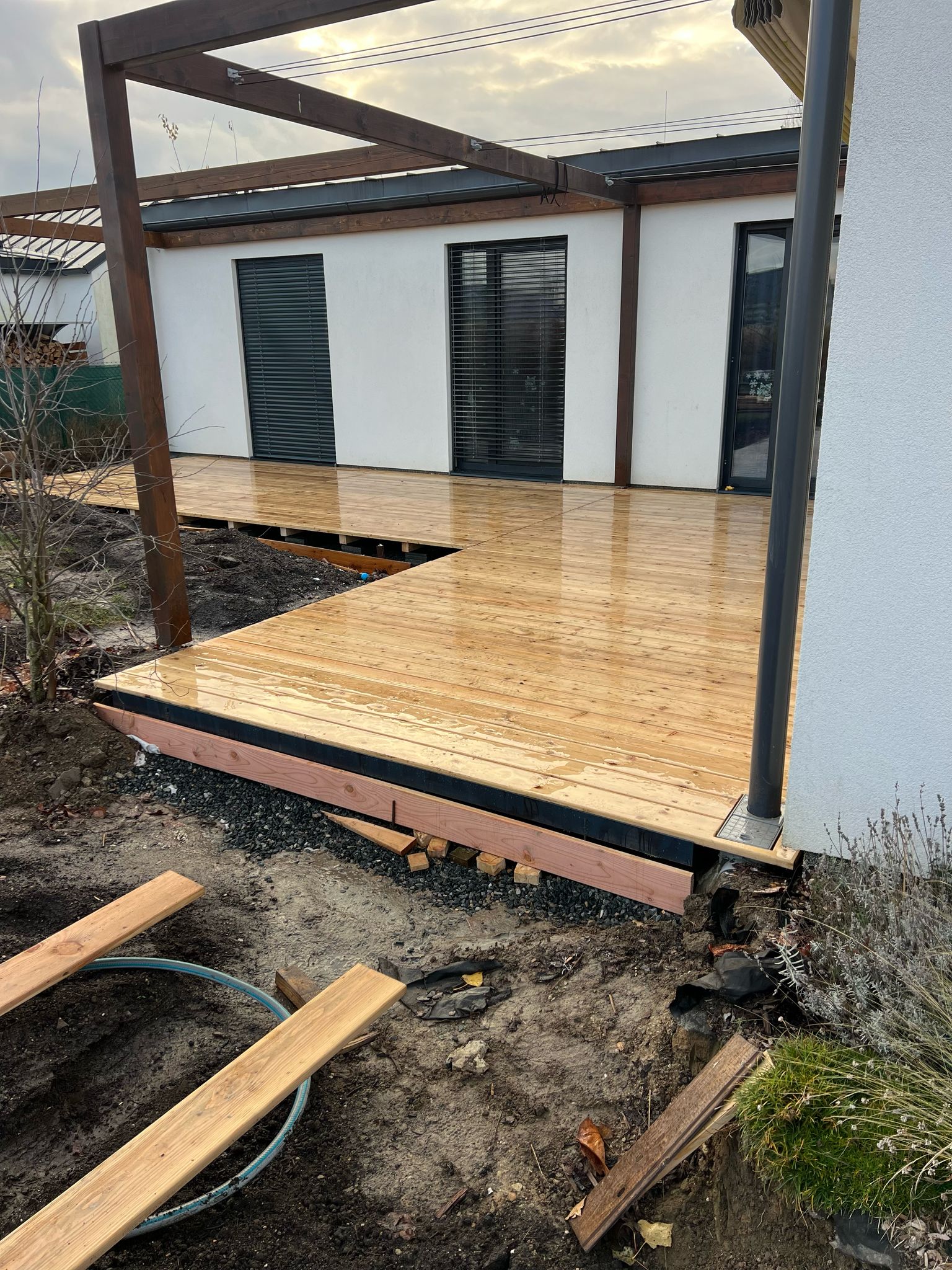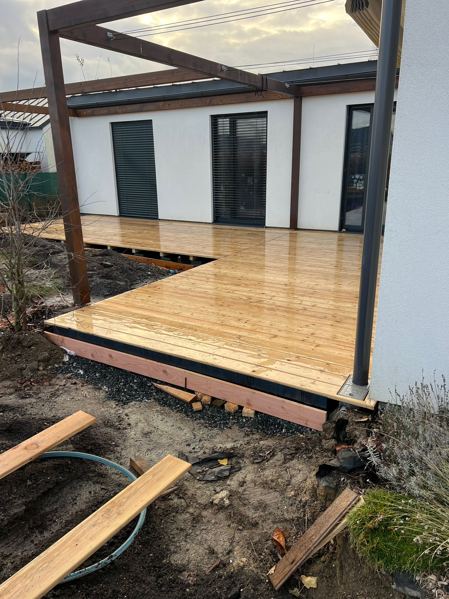 Výsledkem je terasa, která drží tvar, nevrže, není „měkká“ a dlouhodobě funguje.